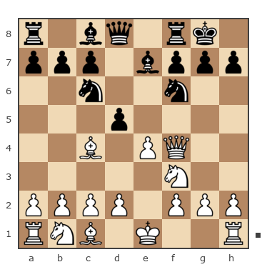 3...Qe7? (лучше З...Bcб) 4. d4 f6 5. Nd3! de 6. Nf4 Qf7 7. Nd2 Bf5 8. g4! Bg6 9. Bс4 Qd7 10. Qe2 Qxd4 11. Ne6! Qbб 12. Nxe4 Nd7 13. Bf4 Ne5 14. 0-0-0 Bf7 15. N4g5! fg 1б. Bxе5 Bf7 17. Bxс7! Черные сдались.