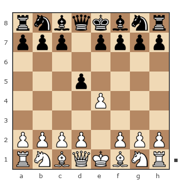 1. e4 Nе6 2. Nf3 Nf6 3. Nс3 (в случае 3. е5 Nd5 4. с4 Nb6 5. d4 d6 черные угрожают отыграть потерянные темпы, хотя им нужно считаться с возможным продолжением 6. е6 fe с шансами на атаку у белых) 3...d5 4. ed Nxd5 5. d4, создавая центральную пешку. Последовало: 5...Bf5 6. а3 g6 (здесь был выбор: сыграть е7–е6 с последующим занятием ладьей линии "d" и наблюдением за пешкой d4) 7. Bс4 Nb6 8. Bа2 Bg7 9. Bе3 е5! (итак, черные играли не на осаду пешки d4, а на ее размен) 10. Qе2 0-0 11. de Bg4, и черные отыграли пешку с несколько лучшей игрой.