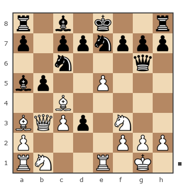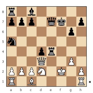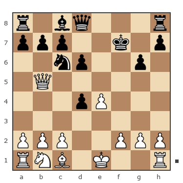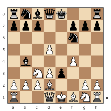 1. e4 e5 2.f4 ef 3. Nf3 g5 4. h4 g4 5. Nе5 Nf6 6. Bс4 d5 7. ed Bd6 8. d4 Nh5 9. Bb5+? сb 10. dc Nxс6 11. Nxc6 bc 12. Bxc6+ Kf8 13. Bxа8 Ng3 14. Rh2 Bf5 15. Bd5 Kg7 16. Nс3 Rе8+ 17. Kf2 Qb6 18. Nа4 Qа6