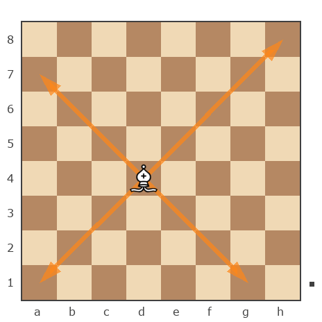 Слон ходит только по диагоналям, как дамка в шашках. Если слон вначале стоит на черном поле с1, он никогда не попадет на белое поле (проверьте). А его коллега — белопольный слон — на f1. Каждому слону доступна только половина доски — 32 поля.